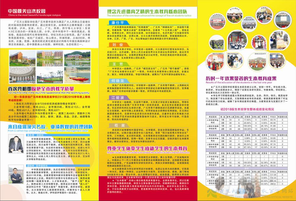 广元天立国际学校是广元市委市政府为满足广大人民群众日益增长的对高端优质教育的需求,通过招商引资,由神州天立教育集团(已拥有成都、泸州、宜宾、内江、广元、西昌、西宁等七大学区)斥资4.5亿元创办的一所集幼儿园、小学、初中和高中于一体的高起点、高规格、高品位的现代化寄宿制学校。学校为民办公助性质,是广元市教育局直属学校,地处广元城区,依山傍水,环湖而建,占地280亩,将自然、庄重、优雅、高贵的欧式英伦建筑设计风格与中国古典园林设计理念完美融合,是中国最美山水校园、湖畔校园、生态校园之一。