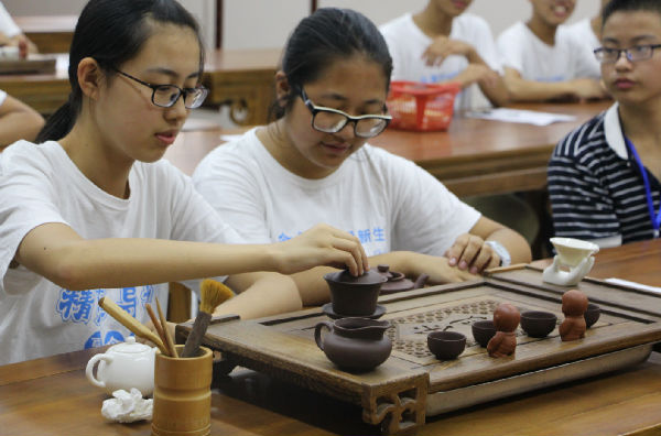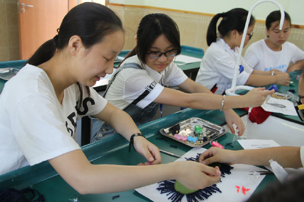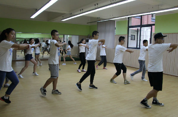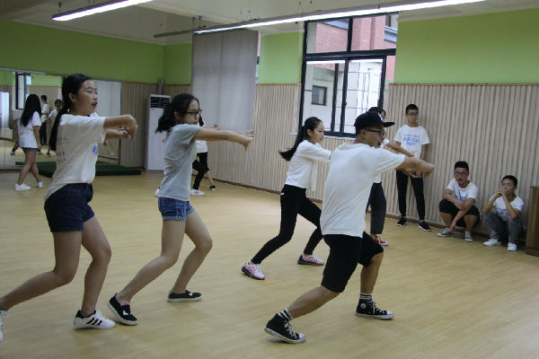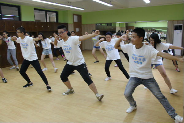吹皱的湖面荡起层层白浪,骤降的暴雨模糊众人视线。艺体选修课程终于拉开帷幕,由于突然降临的疾风骤雨,早早计划的选修项目只得转向室内。沙画、油画、版画……共同绘制了美术的色彩世界;人物、风景、水粉、木板……纷繁的材料在画者的手中都能成为美丽的见证。魏老师的课堂中,美妙与奇幻交织,为这群畅想艺术世界的孩子们擦亮了双眼。音乐的天堂总是值得期待,因为跳动的音符间镶嵌着孩子们最真诚的爱意。从最基本的发声入手,王老师带着大家学会以气出声,用最坚实的力量去吟唱美妙的歌曲。一碗一盖一深情,一茶一语一人生。一袭旗袍,端庄优雅,何老师的茶艺课堂弥漫着清新之感,而同学们也在这举手投足间懂得了温婉与品位。既然冠以国家之名,中国舞自然承载着传统的韵味儿。一次轻柔的举手,一次偶然的转身,步调轻盈,舞姿曼妙……庞老师身上散发着自信的气息,舞蹈的神韵感染着身后的学子,赢得了他们来自心底的膜拜。如果说中国舞是传统而柔美的,那街舞自然是现代与力量的融合。跟着时尚的节拍,他们笃定执着,在罗老师的引领下,舞出阳光而帅气的风范。