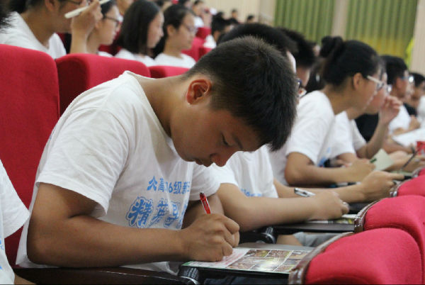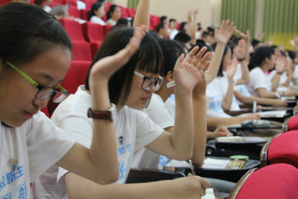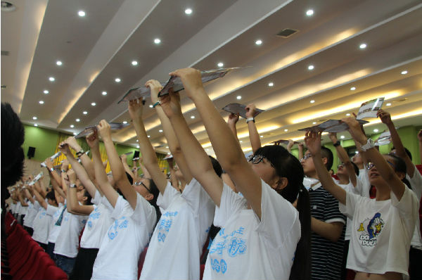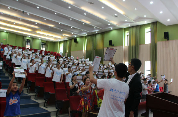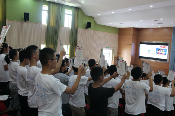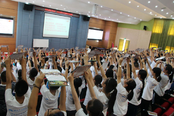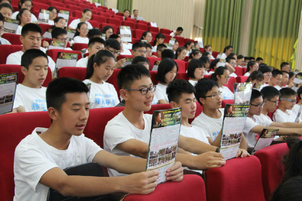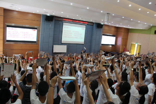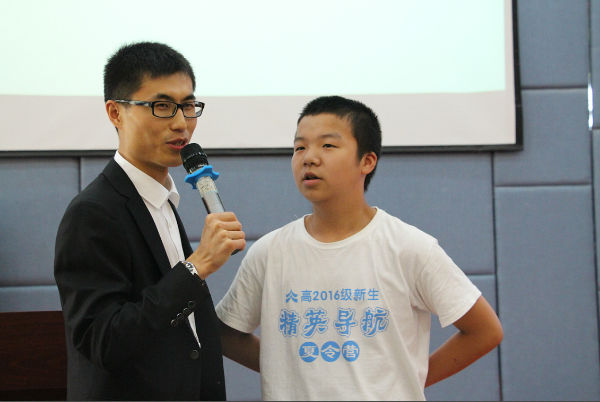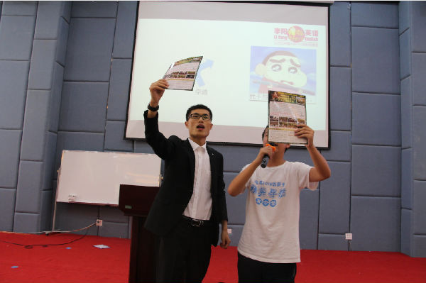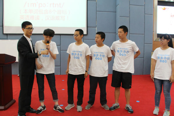 前几日的生化实验,让一众学子对理科的学习产生了浓厚的兴趣,而今日的疯狂英语,更让全体营员感受到语言的魅力。受学校邀请,今日上午,李阳疯狂英语团队再次走进广元天立。虽然没有李阳老师的亲临现场,但其亲传弟子的乔佩东老师的引领示范同样震撼人心。活动开场,乔老师为在座的各位进行了简短的双语自我介绍,“乔帮主”的称号既是业界的美誉,也是对乔老师专业水平的肯定。乔老师用语亲切,风趣幽默,总能以自己的乔氏风格为讲座现场带来一阵阵掌鸣与笑声。在乔老师的询问中,同学们大胆承认自己对英语学习的困难,并勇于尝试以新的方式去改变英语学习现状。值得学习的是来自一营的毛皓岳同学那难以企及的勇敢与自信,多次登台展示的他敢于表达心中所想,赢得了老师的高度肯定,得到了同学的默默赞许。活动进行时,同学们积极参与到乔老师的互动之中,表达了自己对英语的喜欢,并懂得了英语学习的多听多讲。本次活动让同学们真切领略了李阳英语的疯狂,为今后的学习找到了信心与方向。