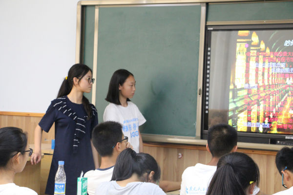 往日的德育时间由老师掌控,而今天的安排早已交给了学生。全国及世界名校是所有人梦寐以求的地方,短短的几十分钟,各营开展了读名校活动。此前,同学们以小组的形式选择了向往的学习之地,抓时间、抓地点,用有限的空隙呈现出各大名校。或许是耳熟能详的清华北大,又或者是跨海远洋的哈佛剑桥,不同的解读,别样的风格。娓娓道来,凤舞幽默;高谈阔论,深入浅出。有的同学,还在深究的基础上谈及自己的认识与大学情结。更有甚者,在展示中穿插着随机互动,让更多的同学参与其中,赢得了掌声与喝彩。