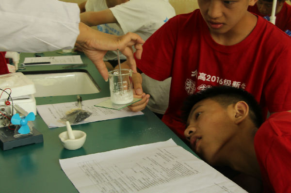 几千年前,汉字的产生为世界文化创造了奇迹,从形象丰富的甲骨文到简洁明了的楷书,历经纷繁复杂的演变,历史的积淀成就了它今日的辉煌与意义。语文课上,老师带着同学们徜徉在文字世界里,领略意蕴深刻的古代文化。历经七天的交流,同学们相互认识,小组间有了默契,课堂展示变得积极而活跃。当茄子、紫甘蓝、牵牛花、葡萄皮进入了化学实验室,也能检测酸碱的的性质。赤橙黄绿,浓淡不一,几位老师带领着同学们目睹并记录了这缤纷的色彩。显微镜下的世界生动又奇妙,为生物课带来了别样的趣味。透过镜片,液泡缩小,同学们观察到洋葱质壁的分离与复原,体会了生物的神奇。