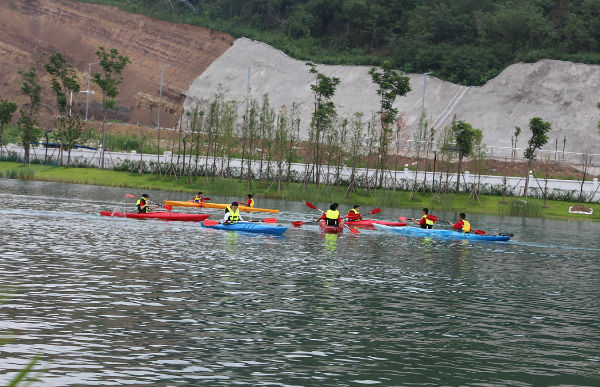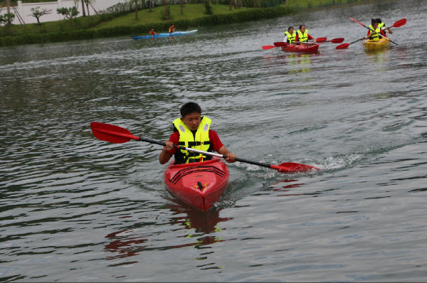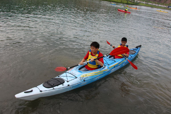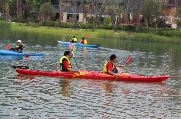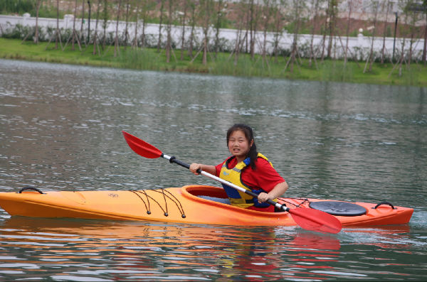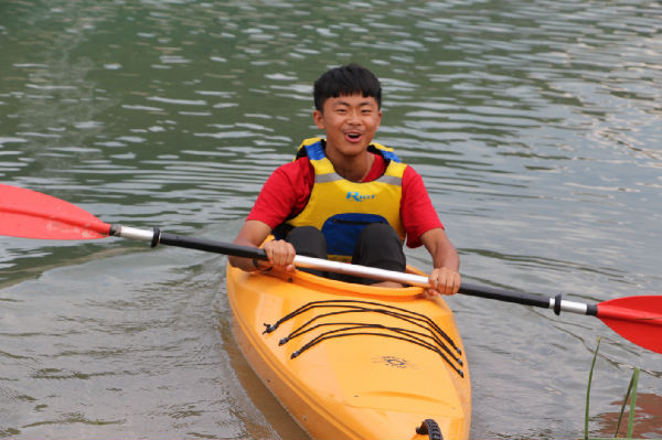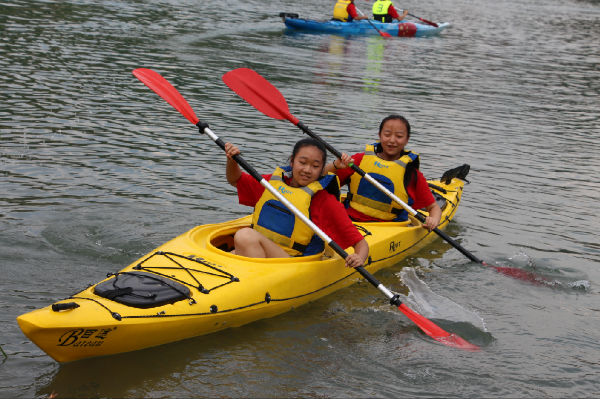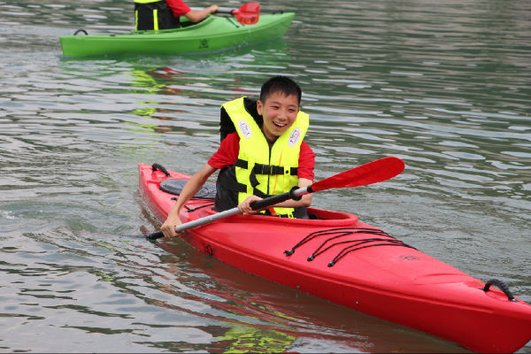 今天的体育选修照常进行,音乐、体育愈发精彩,而美术课也在同学们的亲自参与中,产生了系列作品。从欣赏到绘画,从设计到剪纸,魏老师让孩子们感受美术领域的博大与精深,带领着他们绘制、裁剪,拼出了多姿多彩的世界。五营的孩子们有幸坐上了皮划艇,或者单人,或者结对,在天鹅湖上拨动双桨,享受着山水的宁静和青春的美好。有的人落水了,翻滚几下,再次尝试;有的人划累了,停下双桨,休息片刻;有的人靠岸了,噗通一声,直扑水面……炎炎夏季因为清澈的湖水变得不再那么酷热,同学们不怕湿、不惧累,因为合作而心满意足。