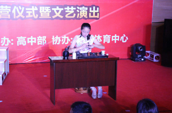 开场的街舞点燃了观众的热情,被空调冷却的会场再次沸腾起来,现代与时尚并行的舞姿备受年轻一代的青睐。节目陆陆续续被搬上舞台,而不同的形式,别样的情调,让现场高潮迭起,迎来阵阵喝彩。多情如舞蹈,蒙古的豪情与奔放众所皆知,而今天的表演却多了份柔情,添了点雅致,这便是民族的性情和多元的融合,仿佛天立所追寻的传承与创新并进。你有传统演绎,我有世界潮流,当舞蹈间的“较量”火热进行时,国标也不甘示弱。它是自由的符号,是热情的象征,那洒脱的踢腿和飘逸的裙摆,彰显的是舞者的自信与阳光。街舞的帅气,伴着拉丁的节奏,加之现代舞的深情,这便是青春的舞步,它集结了孩子们的智慧,汇聚着所有人的真诚以待。趣味如语言,一门道不尽的艺术,一次演不完的表达。或者在相声中畅谈语言文学的故事,或者在小品中传达激情理想的初衷,又或在话剧中演绎别样刺秦的设想,无不令人感慨汉语的意蕴于形。宁静若茶艺,如古筝。一袭旗袍,一碗盖茶,十足的中国范儿,别样的韵味儿,原来喝茶也能如此温婉。古有高山流水,今有渔舟唱晚,这样的音乐舒人心脾,仿佛是对山水天立的真实写照。新颖若歌曲,我们听惯了平日里的歌曲,却不曾发现它们还可以这样演唱。被大家认为无趣的合唱却在这个舞台有了新花样,老师编曲,学生尝试,从熟悉乐曲到高低音的合作,每一个细节都镌刻着他们的努力和用心。结尾的串烧同样让人赞不绝口,他们把教室的常态融进歌曲,把朋友的秘密带上舞台,把自己的青春定格在此……几首校园歌曲温馨了现场,感动了众人。老师噙着泪花看完表演,因孩子们十天的成长与蜕变而感动,更为他们的青春无限而感慨万千。