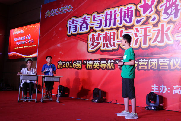 11天之前,我一直担心,担心我们报名的同学会来多少;开幕以后,我也一直在担心,担心同学们能不能出色的完成10天半的学习和生活。我为什么会担心呢?因为目前众多高中新生夏令营为了稳定生源,程序多了很多迎合、甚至讨好娃娃们好玩心性的设计,而我们广元天立国际学校高2016级新生“精英导航”夏令营的设计思路是根据初中毕业生的身心发展的特点,以心理素质拓展、能力培养为核心目标,以学科思想方法指导、学科竞赛衔接体验、拔尖素质培养为主线,为学生构建立体的学与乐相结合的精品课程,有效开发学生的情商、智商等基本素质,提升学生的自学、互学、合学等基本学习能力,引导学生如何做人、如何做事、如何生活,为学生的“三生(生命、生涯、生存)、人性、世界(眼界、境界)、责任、感恩”等五方面素养奠基,……,使学生在夏令营的活动中感受成长,在夏令营的活动中奠定走向卓越的基础,这样的顶层设计思路对管理团队、授课教师、特别是同学们的要求都很高,所以我担心。但是,到了今天,你们依然坐在这里,我很敬佩你们!