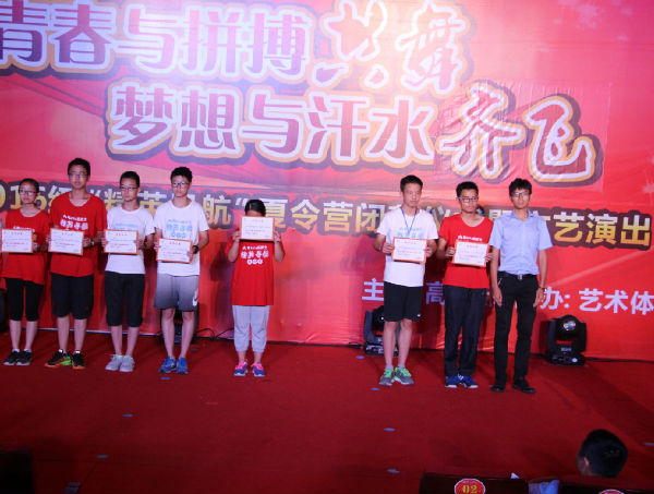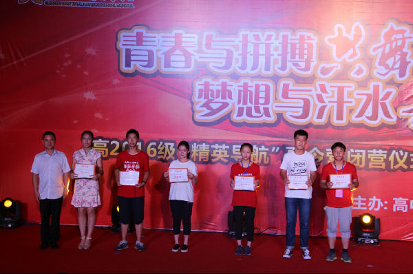 歌舞惊喜不断,而颁发的奖项同样振奋人心,本次共颁出五十多分奖项,只为对他们的优秀予以肯定,对更多的孩子带来激励。凭着初中三年的积淀,加之十天来的出色表现,这里涌现出一大批先进典范。因为独有的兴趣或钻研,“学科王子”由此诞生;带着长久的坚持与磨练,总有这么一群“艺体达人”在众人眼前活跃;跟前辈取经,对世界及中国前列学校的研究,对今后职业生涯的精心策划,这便是“名人、名校、职业研修小院士”的来历;曾家一日,见证了孩子们的决心与胆量,他们独自攀岩、高空跳跃,只为挑战自我,战胜自我,“户外生存训练开拓者”的称号当之无愧;短短十天却有惊人的组织能力,带着自己的伙伴为这个团队共同努力,他们自然称得上“优秀干部”;六人为伍,能力碰撞,不管是课堂的讨论,还是活动的筹划,每一个人都建言献策,从而有了智慧的结晶,这样的“优秀小组”值得所有人钦佩;五个营队,五个集体,不同的引领,独特的表现,“优秀集体”适合每一个团队。向过去的成绩说声再见,他们将带着今天的荣誉重新起航!