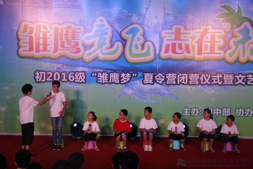 7月20日,广元天立国际学校初中部隆重举办了2016级“雏鹰梦”夏令营闭营仪式暨文艺演出并取得圆满成功。大部分同学都参与了文艺演出,挖掘了过去自己也不知道的潜在才能,表现了家长们都侧目的另一个自己,成功展现了教学质量与特长培养的天立新理念。