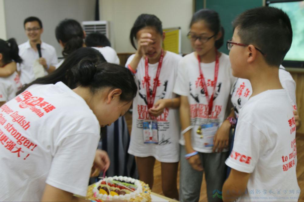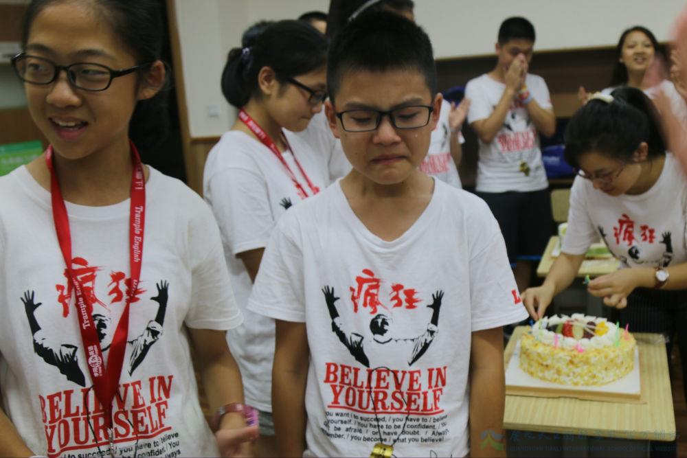 所有8月份过生日的同学都被总监凶狠地叫上台来,面壁思过。当孩子们都在思考自己犯了什么错误的时候,老师们秘密准备好的4个生日蛋糕展现在他们面前。当孩子们转身过来的时候,很多都留下了感动的眼泪。这也许不是第一次这样的有惊喜的生日趴体,但是或许是跟这么多志同道合的同学,一起过的最有意义的一次生日。每个同学都得到了自己的那一份祝福,也将这个祝福送给自己喜欢的同学老师朋友,在他们的脸上留下了开心的印记。