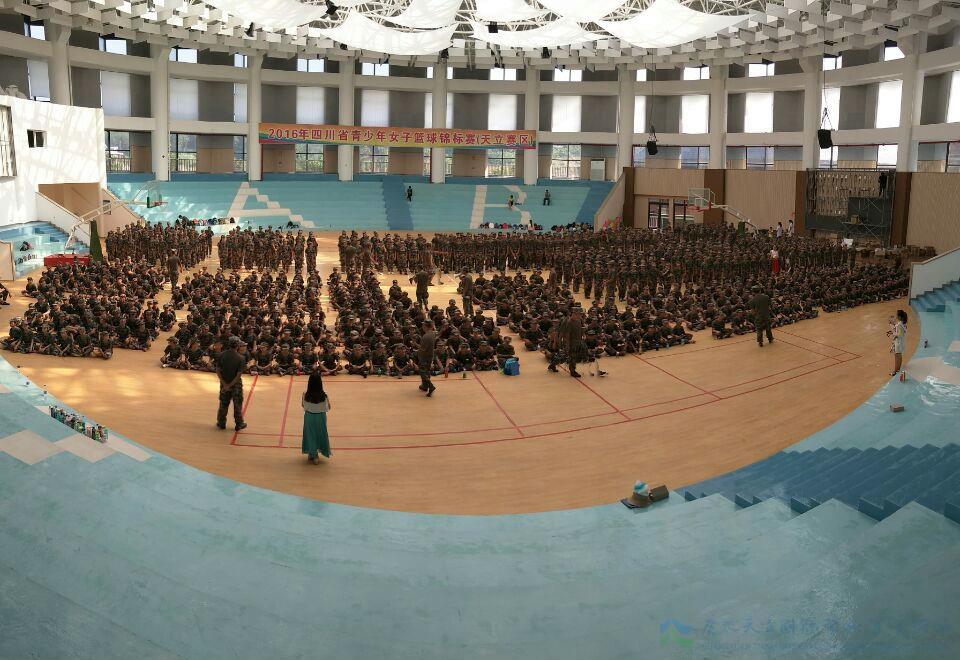 坚强不需要理由,坚强不区分性别,训练场上,无论男生女生,都以百分之百的热情投入紧张的军事训练,直到总教官一声令下,全体参训学生一起转移至学下体育馆,开始室内训练学习。