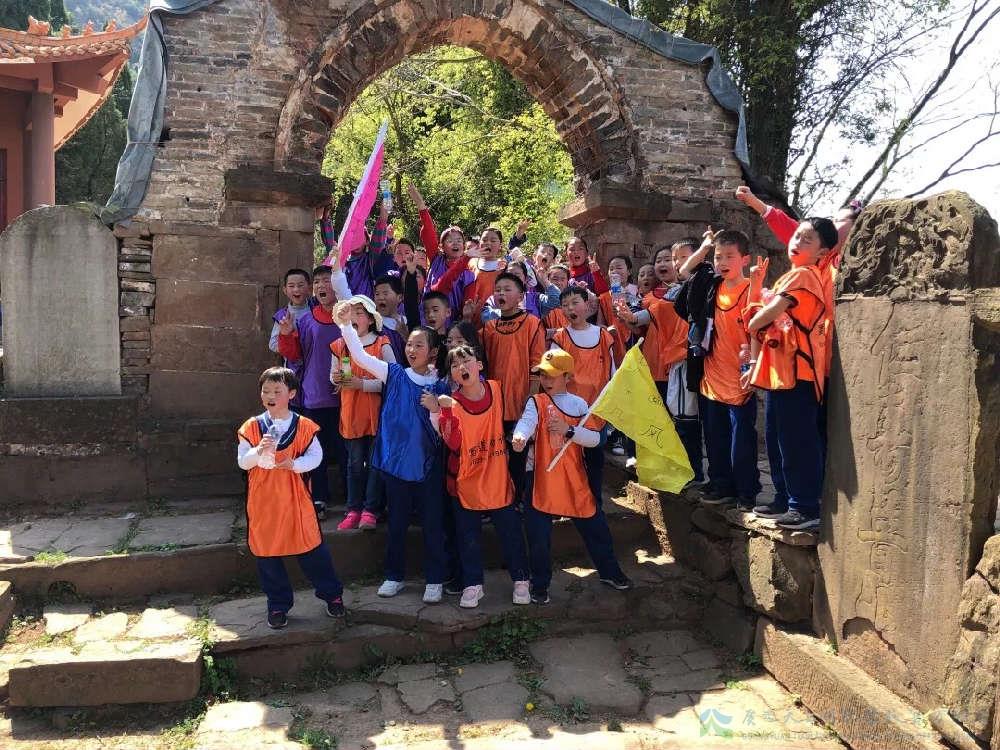 上图为孩子们去户外寻找三国文化,进行研究性学习。