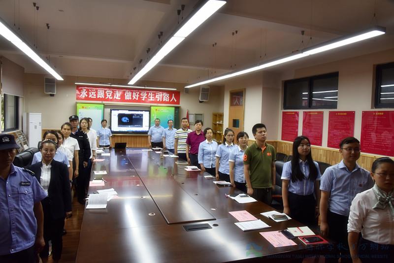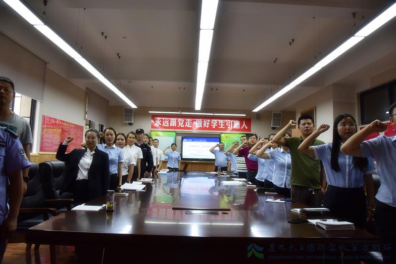 下午四点整,会议在激昂的《国歌》中拉开帷幕。全体党员在初中党小组组长杨邦卿同志领誓下,重温入党誓词,党员们铿锵有力的誓词,代表了他们坚定的理想信念和对党的无限忠诚。