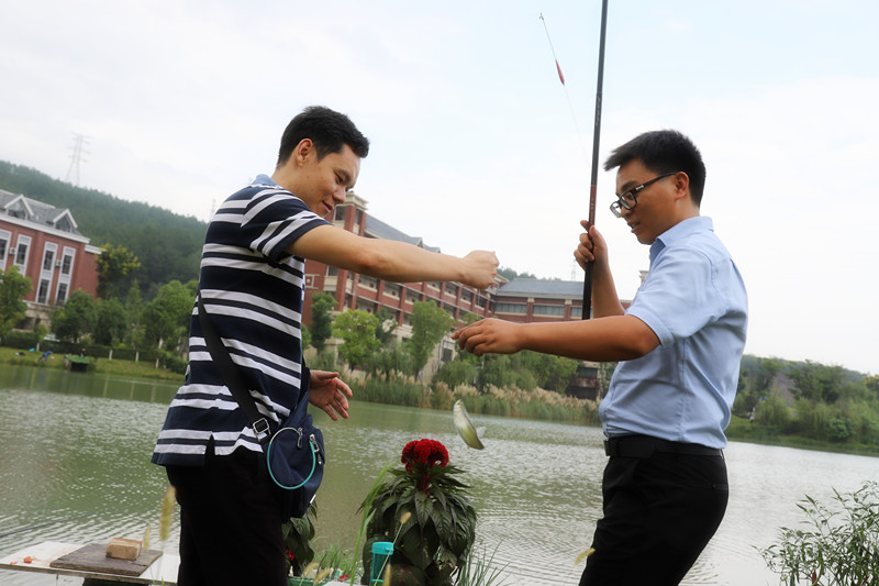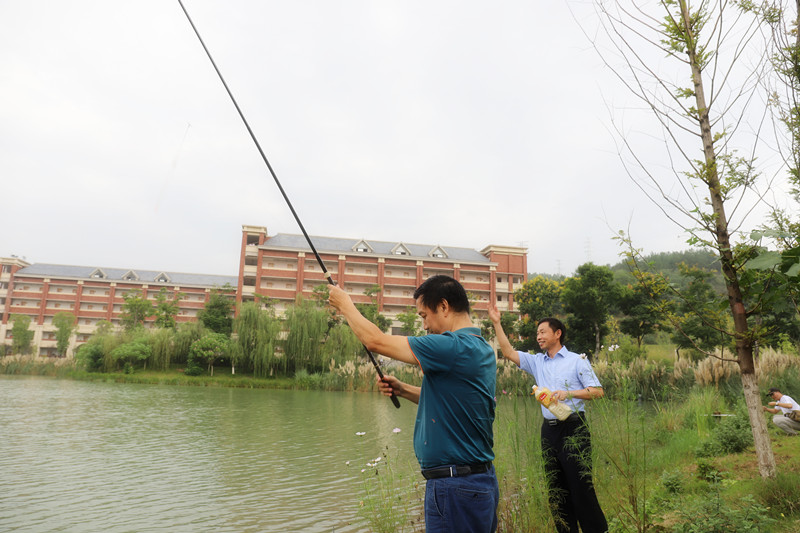 大会在大合唱《爱我中华》中达到欢乐顶峰并成功落幕。会后,由学校工会组织安排,学校还举行了首届教职工钓鱼大赛。从小雨淅淅到艳阳高照,运动员们不被天气因素影响,从容不迫,有条不紊。再到微风吹拂湖面,水流微急,天气变化莫测,鱼层变化不定,运动员们随机应变,理智的调整饵料状态和雾化速度,运动员们沉醉于天立湖,水道蜿蜒,蔚为壮观,他们总是兴致不减,一阵阵兴奋的喊声,让人觉得舒畅巴适,也为本次教师节庆祝表彰活动增添了许多乐趣!