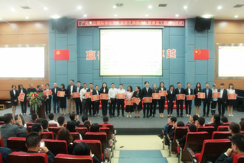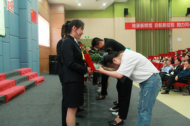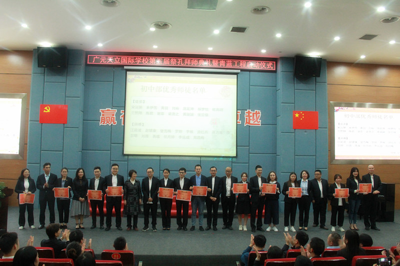 过去的一年里,一大批青年教师加入广元天立,他们朝气蓬勃,怀揣梦想,满怀激情走上广元天立的大讲台,他们在师傅的带领下,勤奋学习,辛勤劳动,认真钻研,取得了不俗的业绩,培养出了一大批优秀学子,成为学生欢迎、同事赞赏的优秀教师。大会对上学年度在师徒结对活动中表现突出、取得优异成绩的徒弟进行了隆重表彰。黄永贵总校长宣读表彰名单。师傅们满怀喜悦之情为自己的徒弟颁奖并送上诚挚祝福。