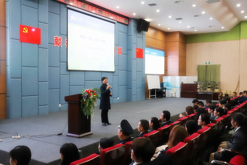 学校党支部书记、副校长兼人力资源部部长薛述容女士以“学习、反思、改变、成长”为题对全体与会人员作了专题培训。她就集团良好和快速发展的现况、集团核心理念、广元天立标准化理念、天立“七步”工作法、天立标杆奖管理办法等进行了宣贯,增强了大家对集团和学校的文化理解和文化认同,提高了大家投身天立教育的责任感、使命感,激发了大家扎根天立、奉献天立的天立情怀。同时,她还就近期后勤条线的重点工作进行了安排和强调,为后期大家如何做好自己的本职工作指明了方向。