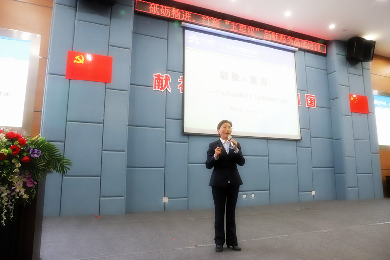 会上,学校党支部书记、副校长兼人事部长薛述容女士以“后勤=服务”为题给全体参会人员做了全面、深入、细致的培训,重点就天立教育集团的核心文化理念、“七星”校园建设标准、后勤服务工作对学校发展的重要性、后勤员工应具有的核心素养和技能及如何进一步提升后勤服务品质进行了精要宣讲,增强了大家对集团文化的理解和认同,提高了大家投身天立教育的责任感、使命感,激发了大家扎根天立、奉献天立的天立情怀。