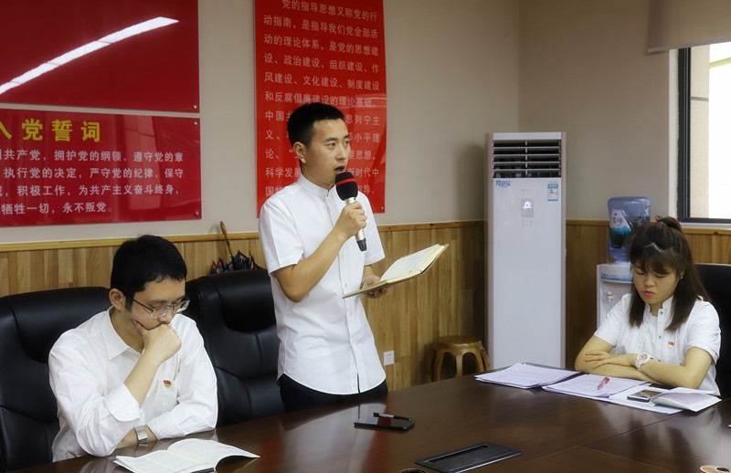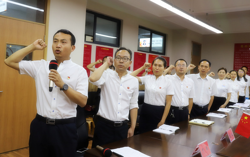 “我志愿加入中国共产党,拥护党的纲领,遵守党的章程,履行党员义务,执行党的决定,严守党的纪律,保守党的秘密,对党忠诚,积极工作,为共产主义奋斗终身……” 全体党员在支部组织委员彭炀坤同志的带领下,重温了入党誓词。