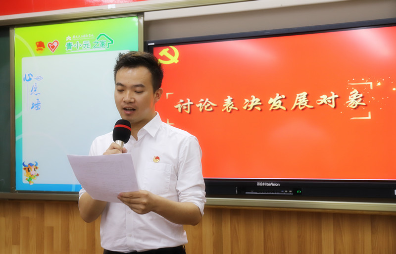 青春心向党,奋进新作为。大会对党员发展对象王晨、刘玫璐两位老师入党事宜进行了讨论和表决。两位青年教师以自身良好的政治思想意识和优异的现实工作表现获得了全票通过,与会党员一致同意他们进入预备党员行列。