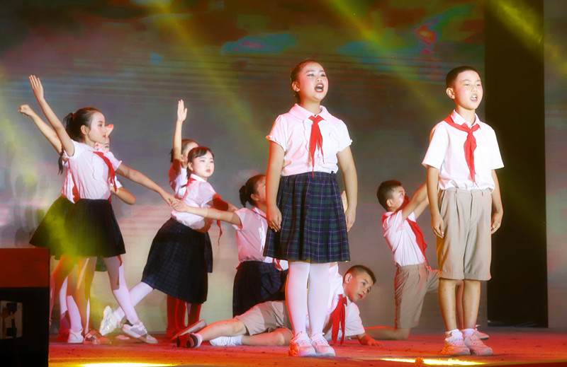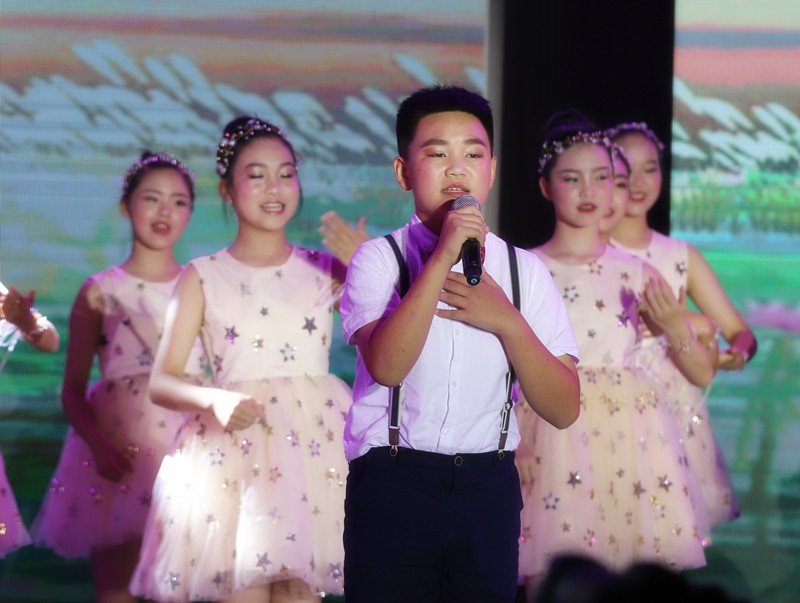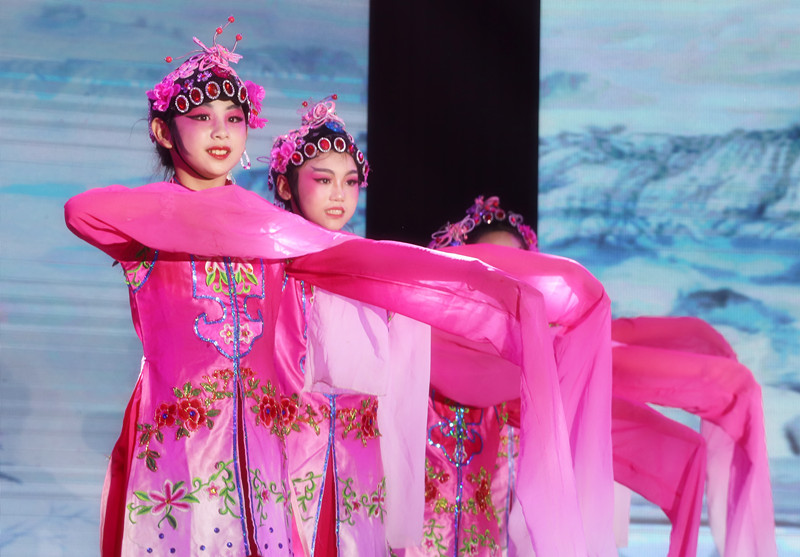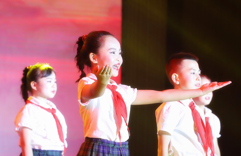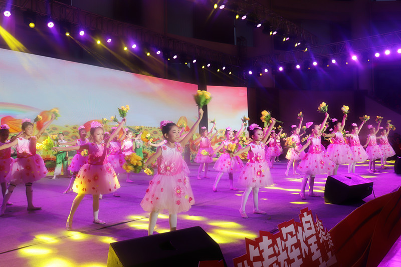 舞台灯光打起,伴着音乐,小学部的小朋友们带来了《我们是鲜花》开场舞,为晚会庆典作了喜庆热烈的开场。