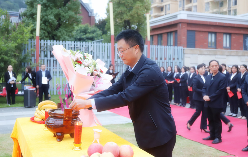我等裔孙弟子,感念祖德,缅怀师恩,祈祷中华儿女:慎终追远,民德归厚,仁爱满人间!当晚6点10分,祭孔典礼在校门口孔子广场准时启幕。伴随着《祭孔乐舞》,主祭人黄永贵总校长向孔子像献花、上香、祭酒并领诵祭文。“金秋飒爽,云淡风清;和谐盛世,家道常兴;先师圣诞,九州恭迎……”全体专任教师和生活教师虔诚行三鞠躬礼。一鞠躬,拜谒至圣先师,发扬尊师重教的传统美德;二鞠躬,表心意继往开来,传承光大孔子的教育思想教书育人;三鞠躬,立志向为人师表,把自己的人生融入到建设富强民主文明和谐的社会主义现代化强国中。大家以拳拳初心感知先哲思想的光辉,坚定天立教育的信念,践行天立教育的追求,守望天立教育的净土。