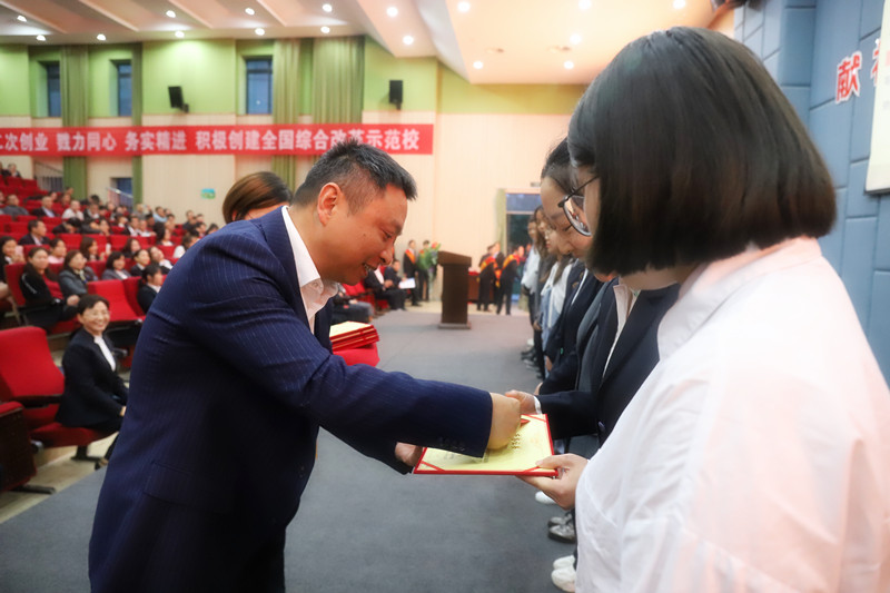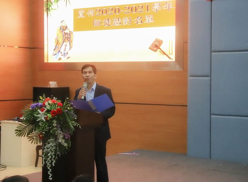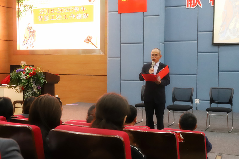 一花独放不是春,百花齐放春满园。“青蓝工程”对青年教师来说,是一项希望工程;对指导教师来说,是一项充电工程,对整个学校来说,更是一项发挥合力的重要工程。初中部副校长兼初中教师发展处主任、学校教师发展处主任蒋万甫宣读“2020—2021学年度各学部师徒结对名单”。来自小、初、高三个学部的部分青年教师与学校部分名优骨干教师结为师徒,结成学习共同体、教研共同体和发展共同体。校领导分组为受聘师傅们颁发聘书。