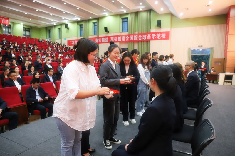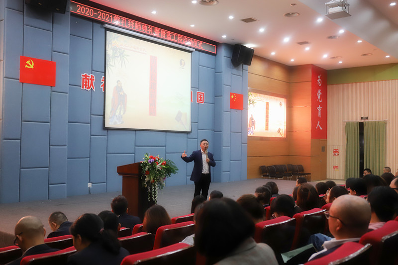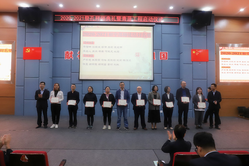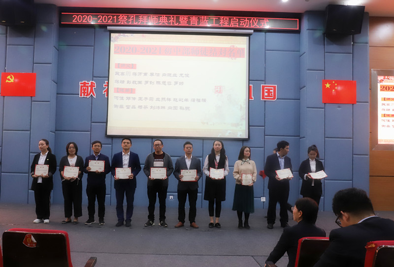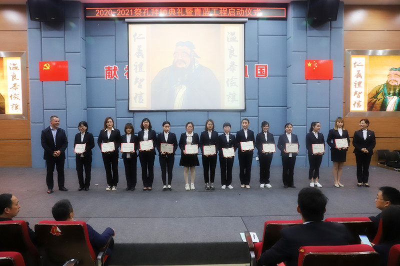 吾等诸学子,继承先师道德,修身、齐家、治国、平天下,为往圣继绝学,为万世开太平!庄重的祭孔典礼结束后,全体专任教师和生活教师移步学术报告厅,隆重举行了“青蓝工程”师徒结对仪式。