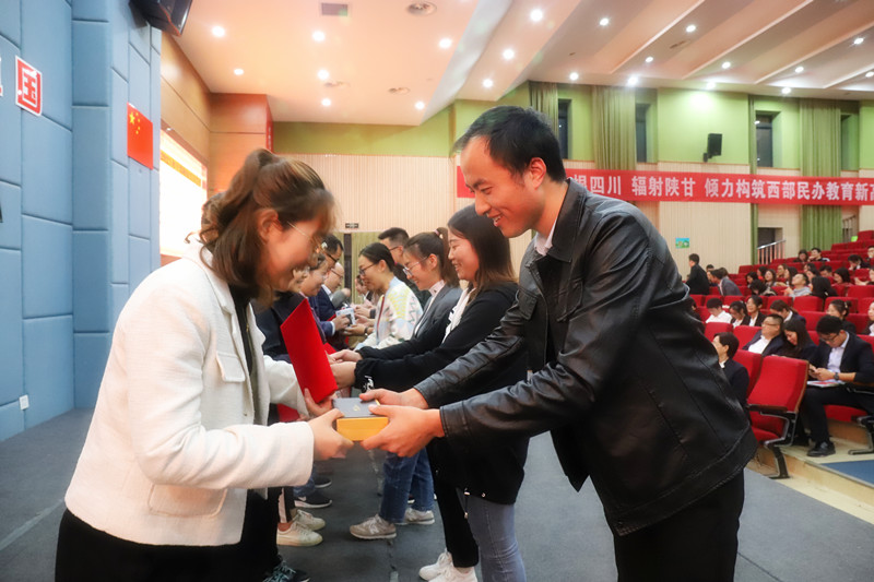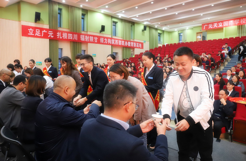 过去的一年,一大批青年教师扎根广元天立,他们朝气蓬勃,怀揣梦想,满怀激情走上广元天立的大讲台,他们在师傅的带领下,勤奋学习,辛勤劳动,认真钻研,取得了不俗的业绩,培养出了一大批优秀学子,成为学生欢迎、同事赞赏的优秀教师。大会对上学年度在师徒结对活动中表现突出的师傅进行了隆重表彰。小学部学术副校长、立达研究院院长舒凯总结了上学年青蓝工程开展情况并宣读表彰名单。徒弟们满怀感激之情为自己的师傅献茶,送上自己对师傅的诚挚感恩。