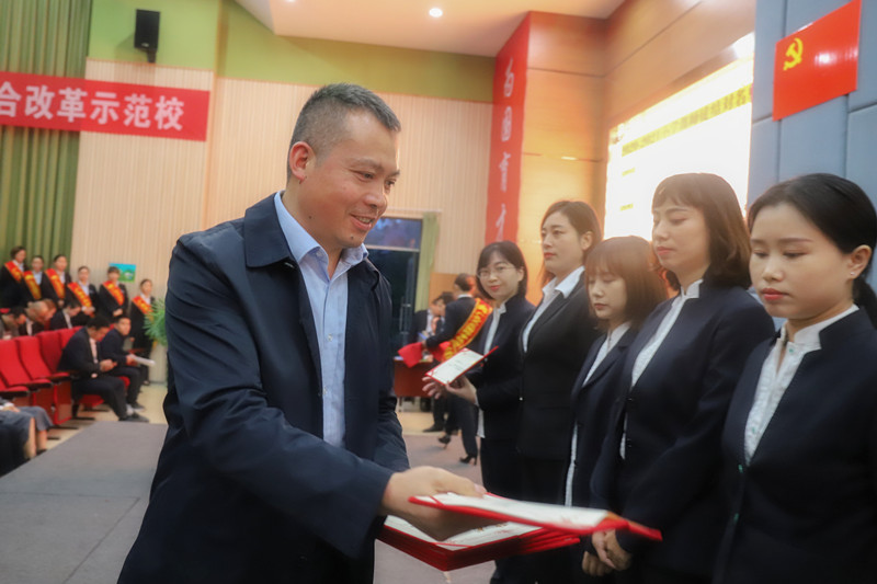 高中部优秀教师何朝龙代表全体师傅做出郑重承诺,将言传身教、率先垂范,为天立青年教师的培养和学校可持续发展竭尽全力,履行师傅的职责。青年教师邓传代表全体徒弟表达了对学校、领导和师傅们的真诚感激,表明了徒弟们将虚心学习、不负期望的决心,发出青年教师将踏实进取、主动学习,早日成长为合格教师、优秀教师,为学校发展贡献力量的坚定誓言。全体师傅和全体徒弟还进行了庄重的集体宣誓,充分展示了天立教师“自我超越、永争第一”的工作豪情。