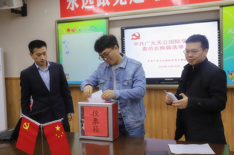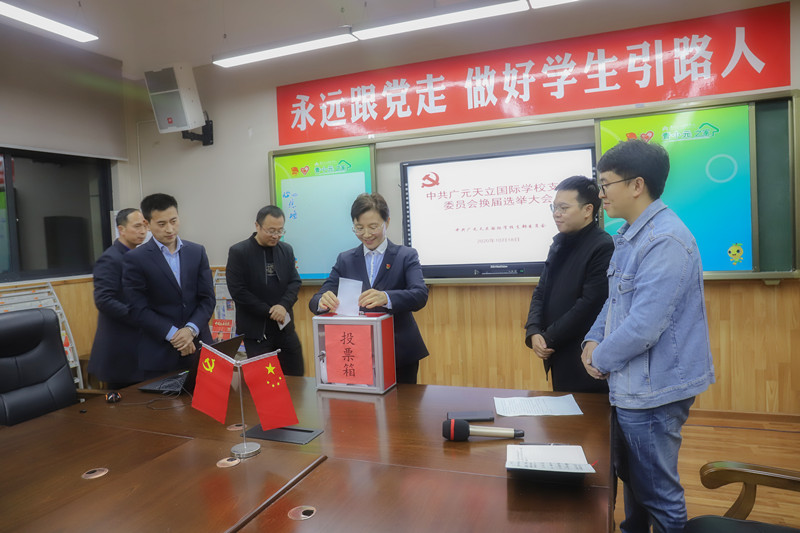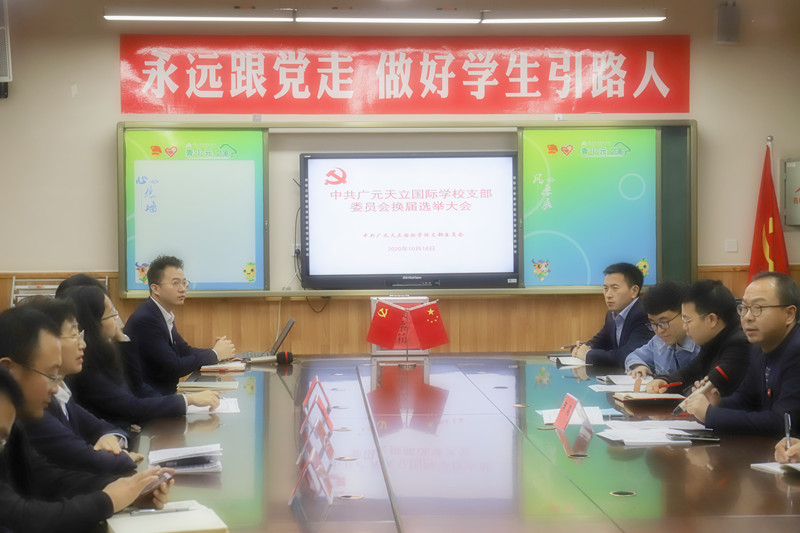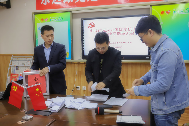 为加强基层党组织建设,办让人民满意的教育,按照《党章》和《中国共产党基层组织选举工作暂行条例》《中国共产党支部工作条例(试行)》要求,经中共广元市委教育工委批复同意,广元天立国际学校党支部于10月18日晚举行了支部换届选举大会,顺利完成了换届选举工作。大会由学校人事行政部副主任、党建与宣传办主任尹鸿同志主持。首先,主持人向大会报告应到会党员人数和实到会党员人数,到会人数符合换届选举的有关规定,选举大会按议程逐项进行。
