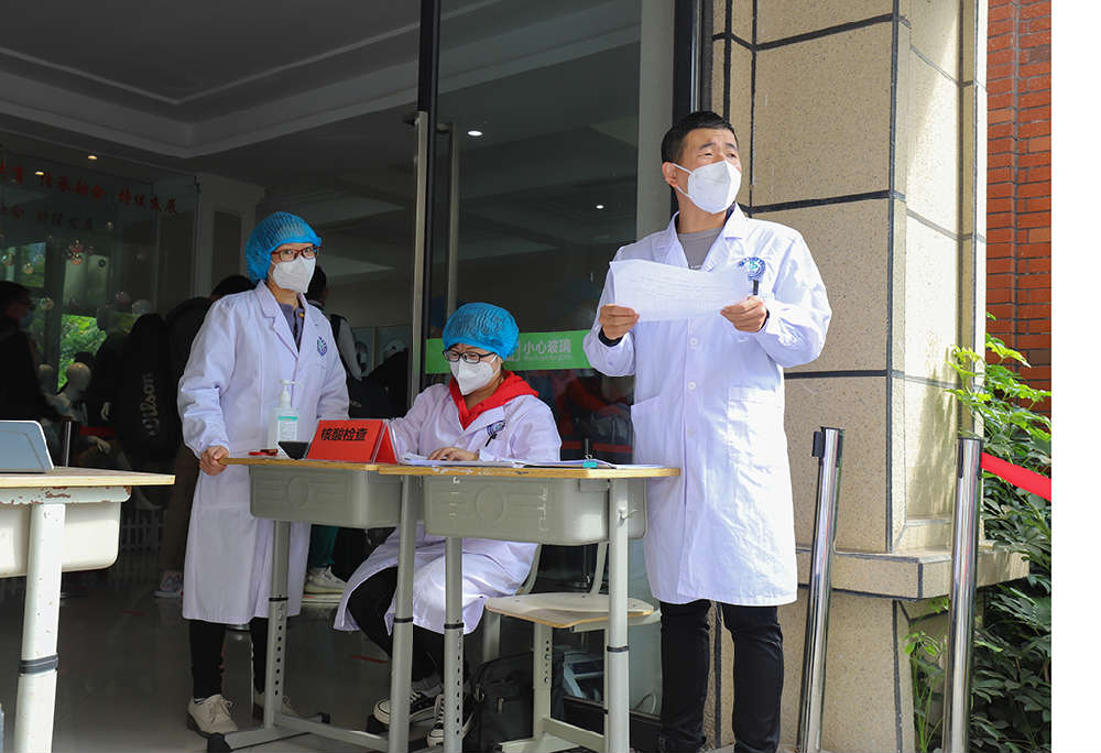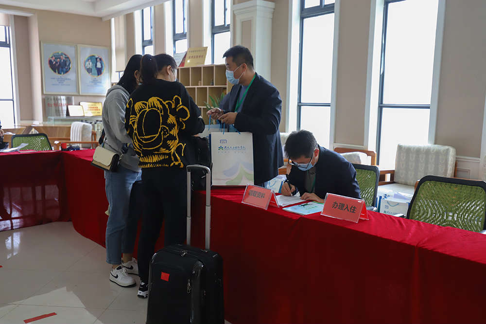 是日上午8时,工作人员、防疫人员及志愿者准时到位,穿着统一服装、佩戴工作牌,以饱满的精神状态迎接前来报到的参赛队员。在校门口,运动员们按要求佩戴口罩,统一进行体温测量和消毒,之后进入报到地点。报到现场,各学校的运动员们陆续前来报到,并在领队、教练的带领下有序进行核酸检测、办理报到手续。工作人员耐心热情地接待来报到的运动员,按照报到流程引导运动员完成报到,并对运动员提出的问题进行了耐心细致的解答。