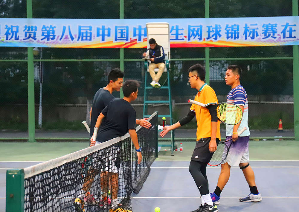 10月25日,第八届中国中学生网球锦标赛各项比赛继续如火如荼的进行。高中组男子单打、男子双打、女子单打以及混合双打比赛在第二赛场广元市澳援体育中心网球场和第三赛场四川信息职业技术学院网球场激情上演。