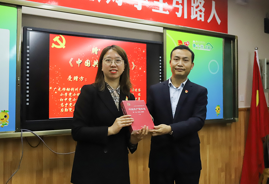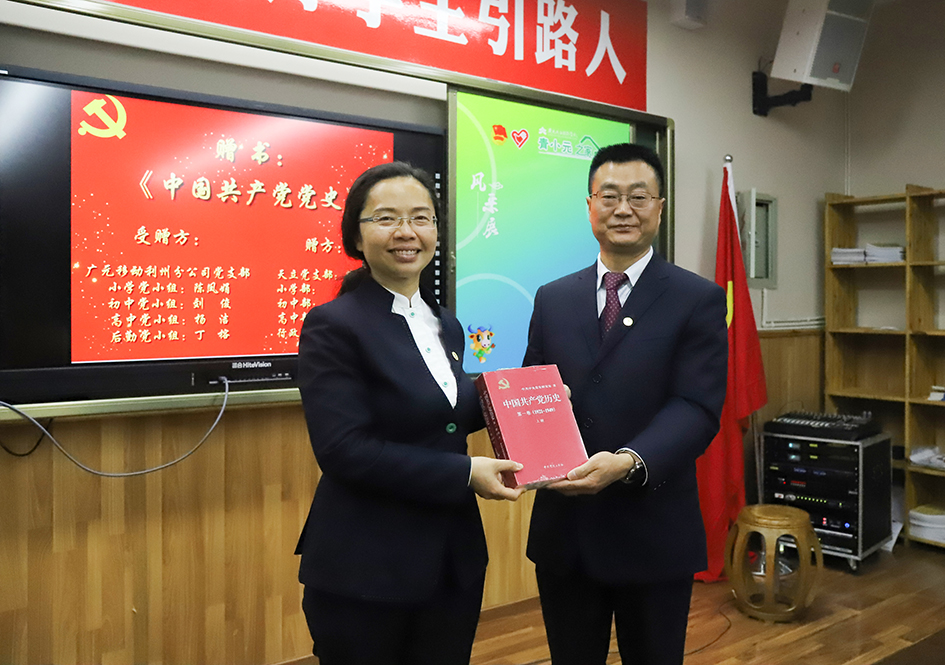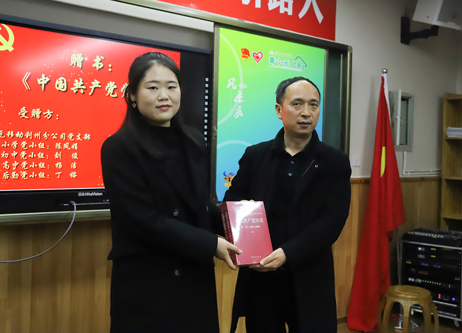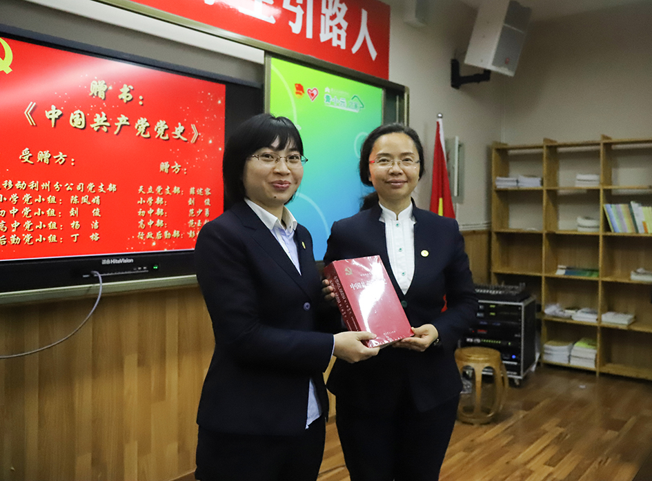 会上,我校党支部举行了向中国移动四川广元分公司利州党支部和我校党员赠送《中国共产党党史》书刊仪式。我们热切希望全体党员用好这批红色书刊,通过学习,让大家更知党、爱党、亲近党,永远跟党走。