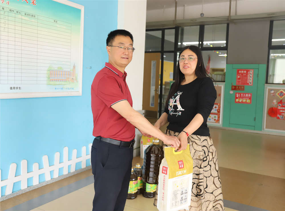 初夏生机盎然,校园拼搏正酣。在全校小初高毕业班师生全力冲刺统考和中高考的关键节点,为肯定毕业班老师们的坚持付出,感谢他们对毕业班同学始终如一的陪伴,鼓舞大家一如既往地携全体学子无惧苦累,冲刺统考和中高考,受因公出差在外的广元天立国际学校黄永贵总校长委托,5月20日上午,学校党政、工会特组织了毕业班教师慰问活动,将慰问品送给了小学五年级和初三、高三的老师们,为这个夏日倍添感动。