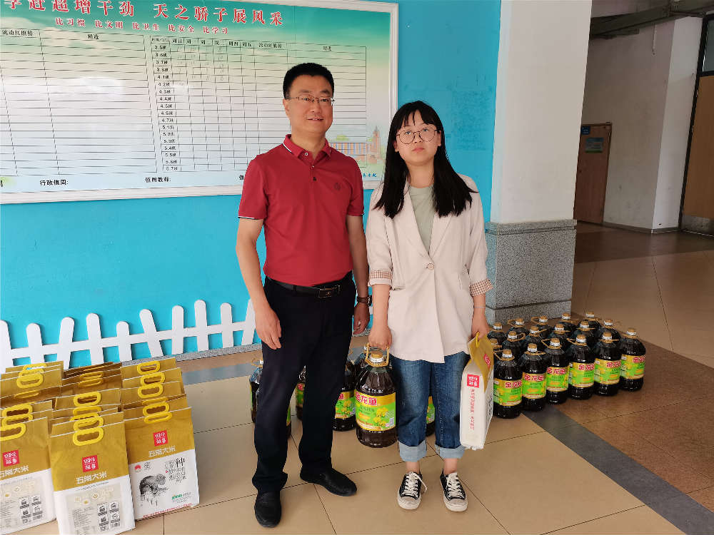 一袋五常米,一桶金龙油,寓意“兵马未动,粮草先行”,全校上下齐心协力为即将到来的大考加油!2021,天立必胜!