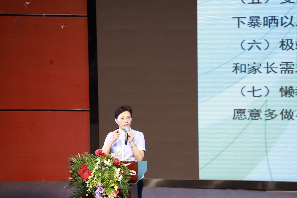 学校党支部书记、学区副校长兼学区人事行政部部长薛述容女士以“为党育人,为国育才”为题,传达了全市教育系统“‘学党史、正师风、强师魂’专项治理活动推进工作会”的会议精神,宣讲了我校师德师风建设实施方案。各学部专任教师与学校签订了师德师风承诺书,昭示着新的一学年学校将以师德师风建设为重点,进一步加强教师队伍建设,提高教师队伍整体素能,办让人民更加满意的教育!此外,薛书记还就新学年学校开学工作进行了安排部署。在学术报告厅,老师们如浴春风,憧憬未来,新学年,这是一个优秀的开始。老师们认识到,一所学校的优秀,不仅是学校要培养出优秀的教师、优秀的学生,更重要的是每一个人都要追求优秀、每一件事都要做得精致,这样学校才会更有魅力。