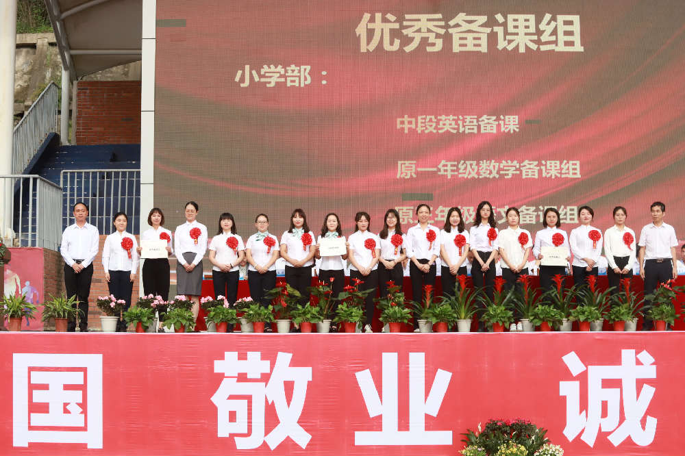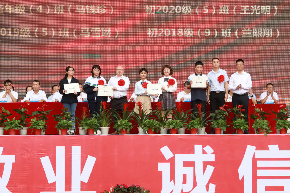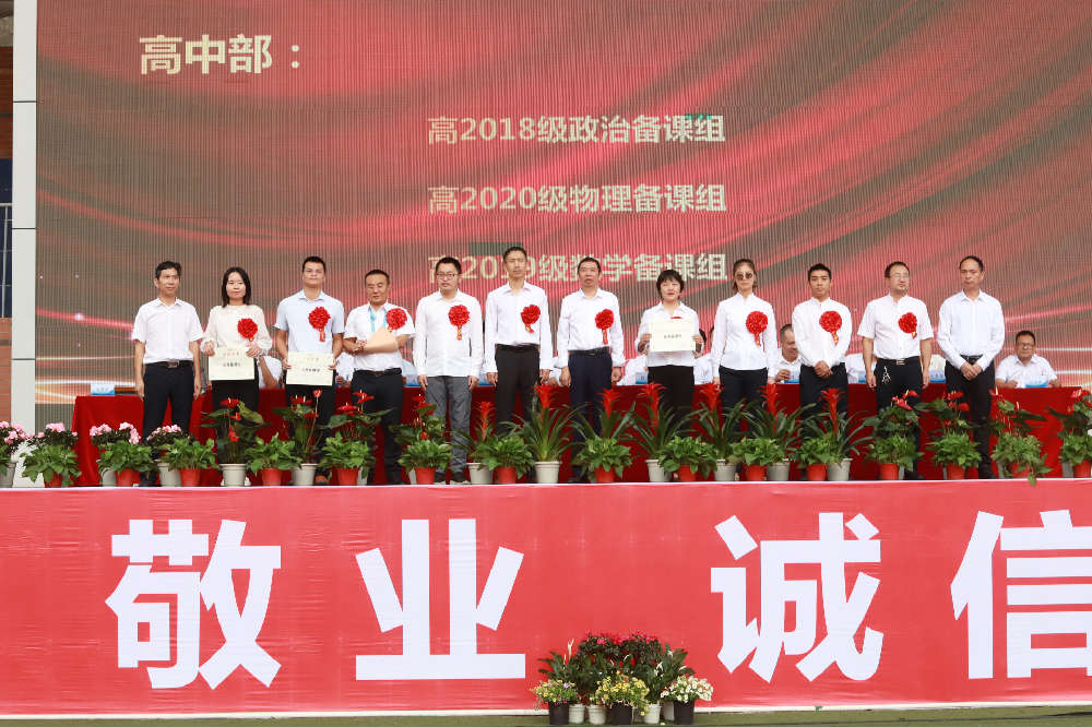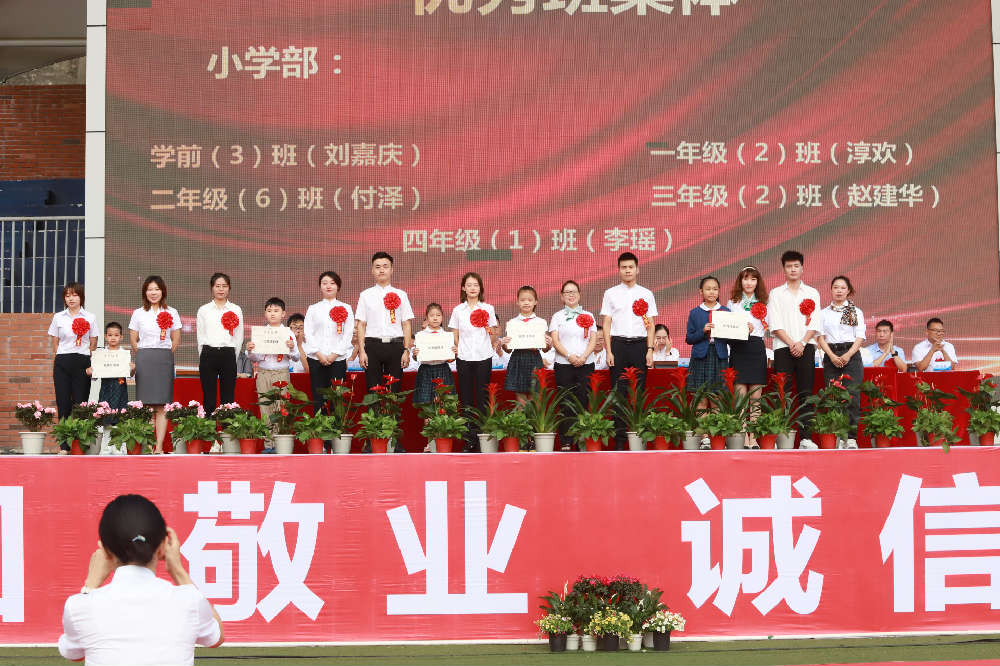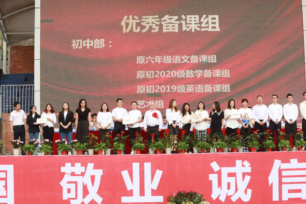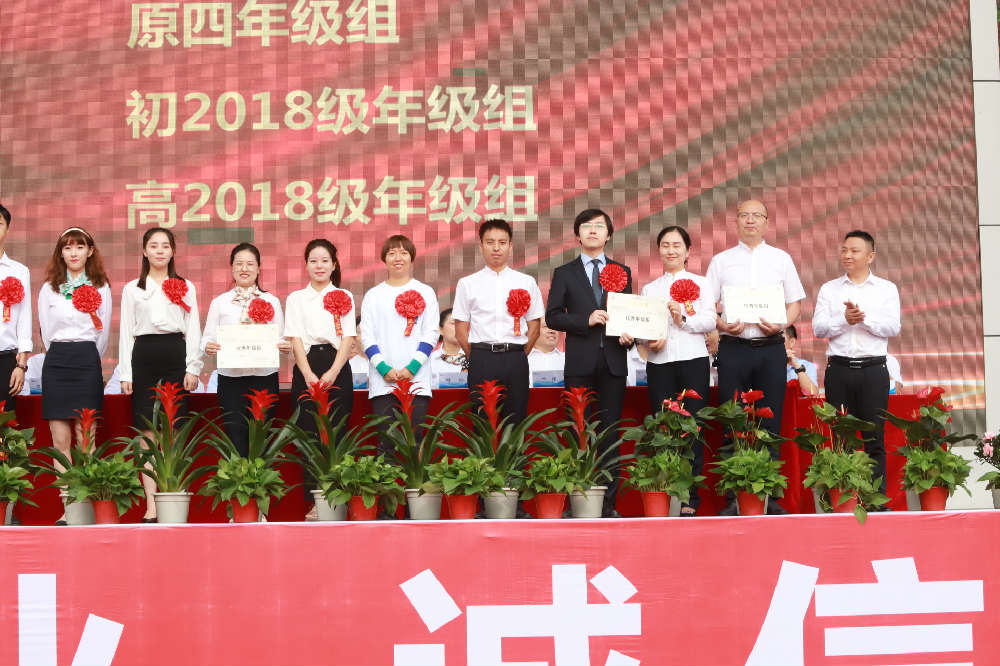 先进值得学习,优秀更应表扬。开学典礼最为激动人心的环节莫过于对上一学年度全校涌现出来的先进集体和优秀同学的隆重表彰。学校党支部书记、学区副校长兼人事行政部部长薛述容女士宣读表彰决定,冯奇建副校长宣读表彰名单。激昂的颁奖乐中,来自小初高三个学部和后勤部的“优秀年级组”“优秀备课组”“优秀服务团队”和“优秀班集体”及在学生自主管理、学业成绩、艺体特长、学科特长等方面表现优秀、取得优异成绩的同学分组踩着红地毯,登上主席台,依次接受学校的表彰和学校领导的颁奖,接受台下师生的喝彩与礼赞。光荣属于过去,未来更加可期。