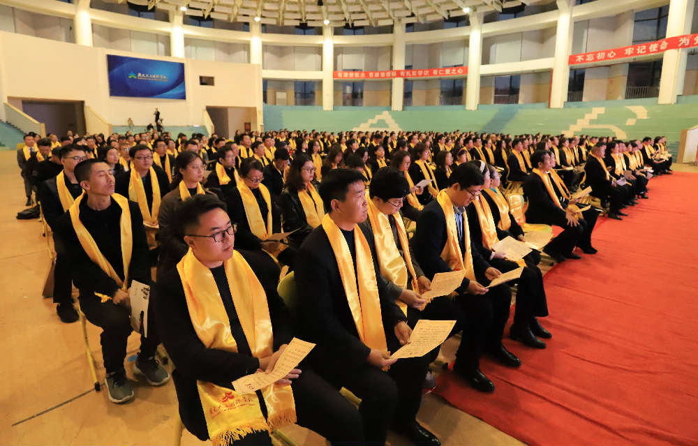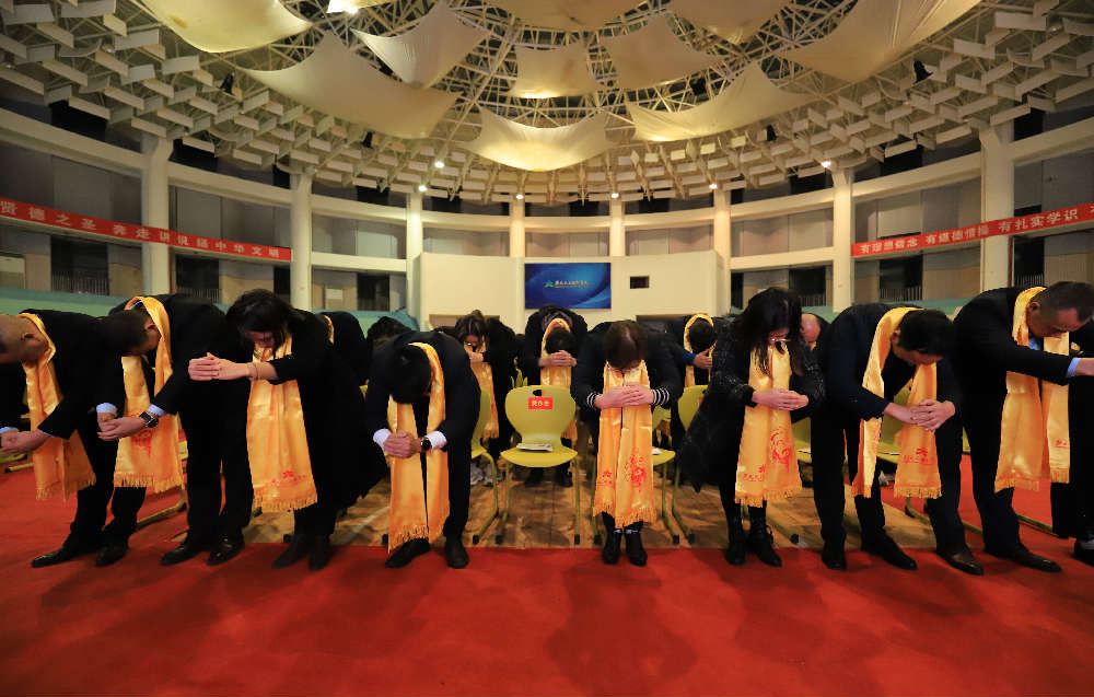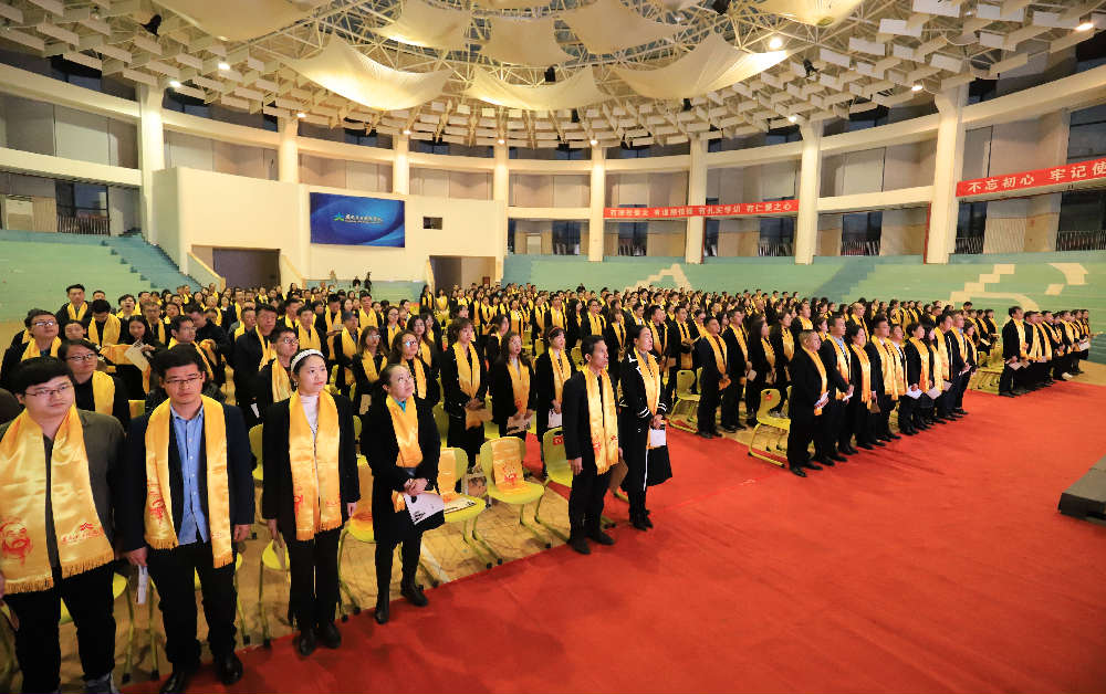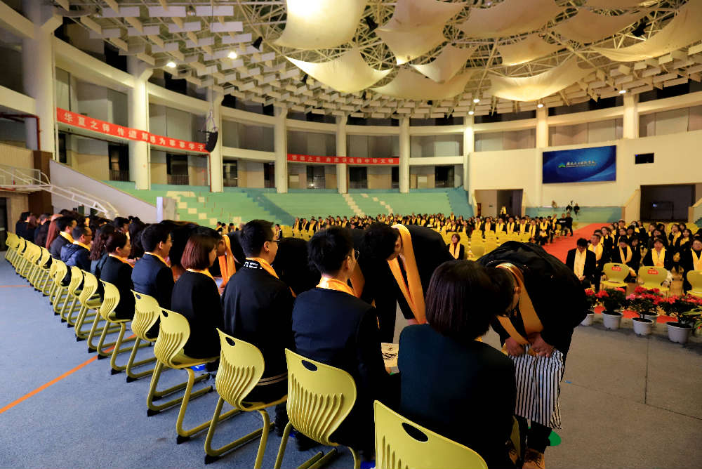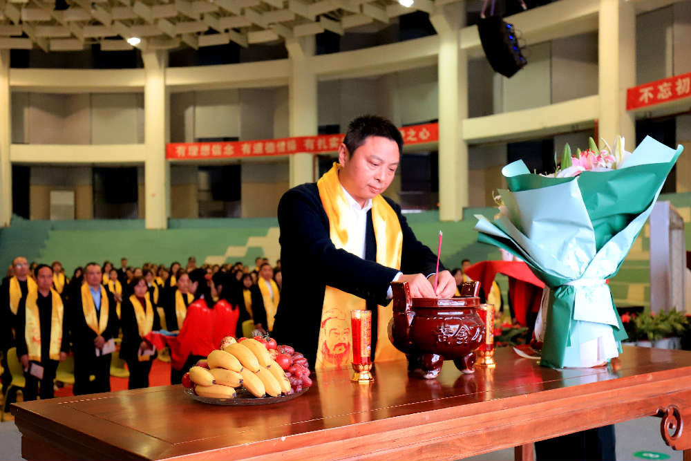 为纪念这位“万纵之圣”“天之木铎”,10月13日晚,广元天立学校在学校艺体馆以祭孔拜师、师徒结对的独特方式纪念孔子诞辰,不忘初心、牢记使命,为党育人、为国育才。高中部人事行政处主任兼团委书记王晨、小学部四年级年级主任古娟主持典礼和仪式。当晚,全校党政干部、专任教师、生活教师、行政后勤处室职员整束衣冠,统一佩戴黄色围巾,谨以鲜花果蔬美酒、鼓乐合鸣,满怀崇敬之情,肃立孔子像前,举行祭孔大典,纪念“至圣先师”孔子诞辰2572周年。祭孔拜师典礼在小学部选送的精彩节目“诗朗诵”中隆重启幕。祭孔大典中,一切随典而动,礼乐和鸣,庄严肃穆,让全场人员的身心俱得中华传统文化的充分沐浴!