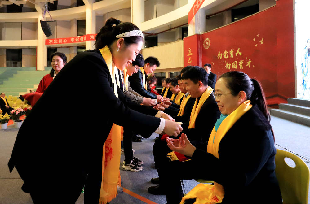 吾等诸学子,继承先师道德,修身、齐家、治国、平天下,为往圣继绝学,为万世开太平!庄重的祭孔典礼结束后,“青蓝工程”结对仪式正式开始。过去的一年,一大批青年教师扎根广元天立,他们朝气蓬勃,怀揣梦想,满怀激情站立在广元天立的大讲台,在师傅的带领下,勤奋学习,辛勤工作,认真钻研,取得了不俗的业绩,培养出了一大批优秀学子,成为学生欢迎、同事赞赏的优秀教师。大会对在上届师徒结对活动中表现突出的师傅和徒弟进行了隆重表彰。徒弟们满怀感激之情为自己的师傅献茶,送上自己对师傅的诚挚感恩。