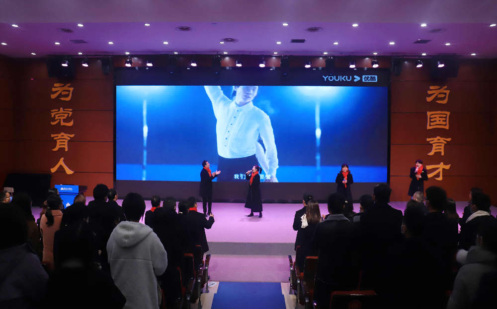 会议在高中人事行政处主任兼团委书记王晨领衔的四位优秀青年音乐教师齐唱2022年北京冬季奥运会和2022年北京冬季残奥会的主题口号推广歌曲《一起向未来》后正式开始。四位音乐教师的精彩演唱点燃了全体教职工的激情,也预示着在新的学期里,全体“广元天立人”将在奥运精神的感召下向着更高、更远、更辉煌的目标大步进发。