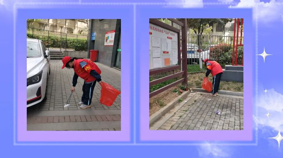 1.参加力所能及的社区劳动,开展植绿护绿、清洁街道、拾捡垃圾等活动。