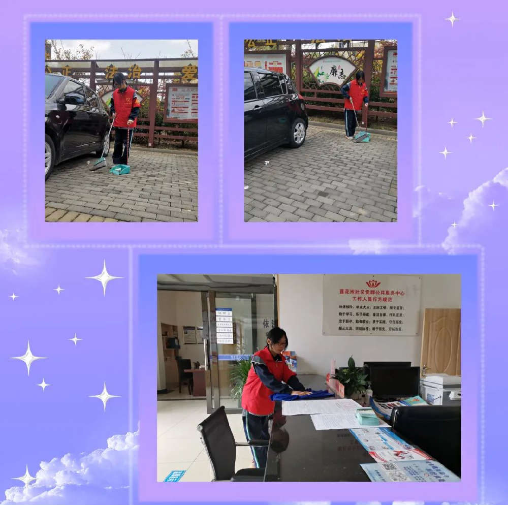 在清洁社区时,四处都有拖拉机,叫我犯了难。风一吹,不是垃圾四溅,就是“添枝散叶”,这为我打扫卫生也添了不少难题。不过我也学到了很多,比如干什么都要有耐心! 失败了,不能轻易放弃,大不了从头再来……有了好的心态后做事也没那么浮躁了,这又让我明白了,一个良好的心态对做好事情是会起到极大的帮助。所以当我们做事前,需保持冷静;做事中不可太急躁。循序渐进,我们方可享受“胜利的果实”。