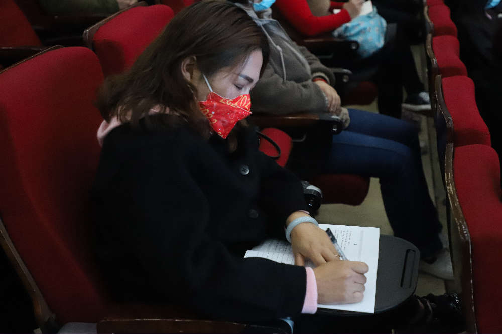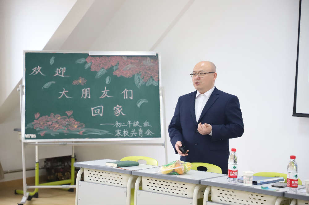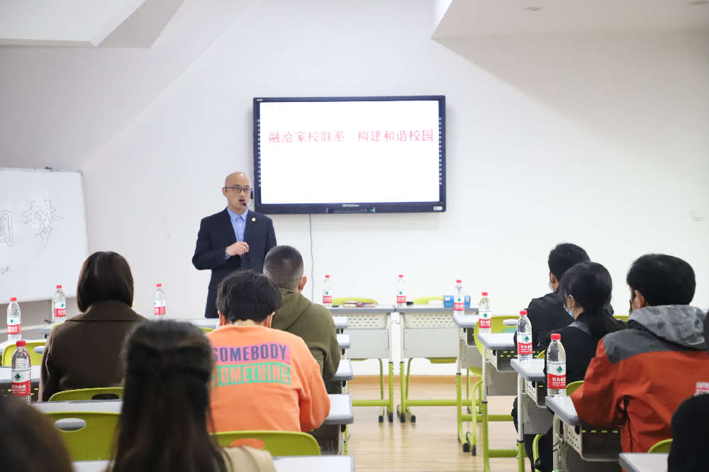 活动伊始,家长们受邀来到学术报告厅参加家校共育会。