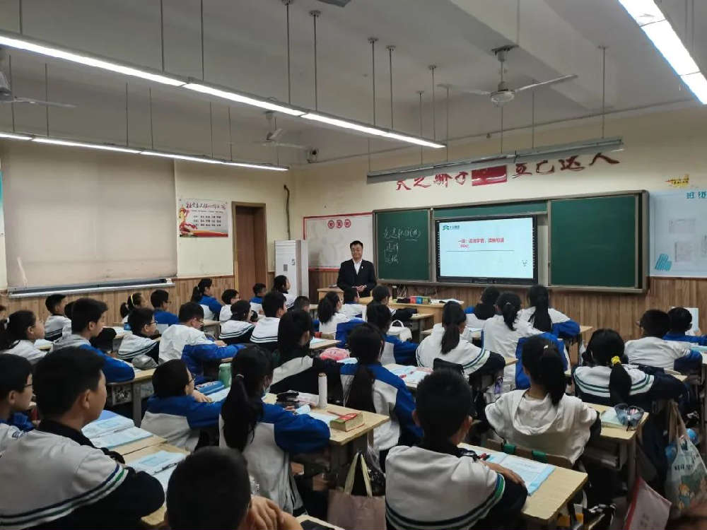初中部校长范少勇代表全校师生对家长们冒雨前来参加活动表示热烈欢迎和衷心感谢!之后与家友们一起分享了《广元天立初中办学特色》的主题报告。他说广元天立学校拥有得天独厚的优美校园环境和完善先进的设施设备,拥有丰富均衡的营养膳食、拥有完善配套的医疗安保及领先的五星后勤服务,这些高品质学校的必备要素一定是家长和孩子们首选。但天立初中绝不满足于此,全面贯彻党和国家的教育方针,坚守立德树人初心,积极践行集团的教法、学法和管法, 在集团九大学科首席教师指引下,以“六立一达”核心素养课程、一主两翼发展性德育、高质量教学教研模式为载体实施全面育人,践行绿色教育,从多个方面确保师生真教乐学。