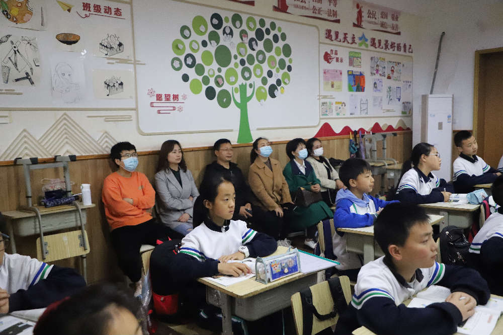 上课铃响,家长们开始观摩各科教学,和孩子们一起感受课堂魅力。老师们丰富多彩、高效务实的教学策略,妙趣横生、精彩纷呈的活动设计,孩子们积极主动的思考讨论、踊跃大方的合作探究、自信勇敢的交流展示,深深吸引着每一位家长。