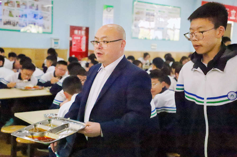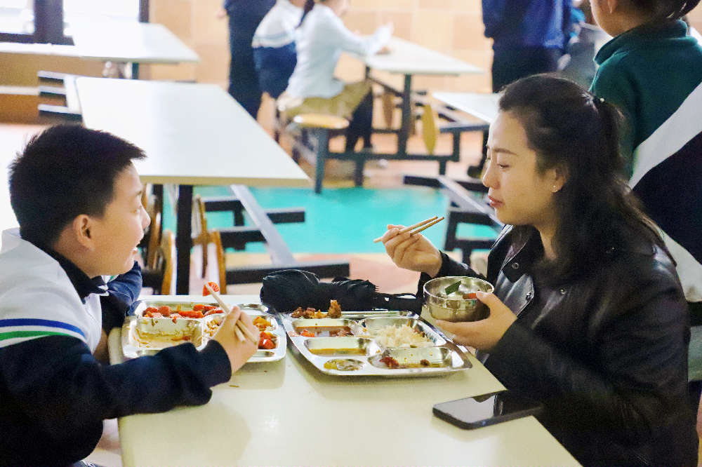 午餐时间,在班主任的陪同下,家长们在学部家委会主席陈海东先生的带领下来到餐厅。