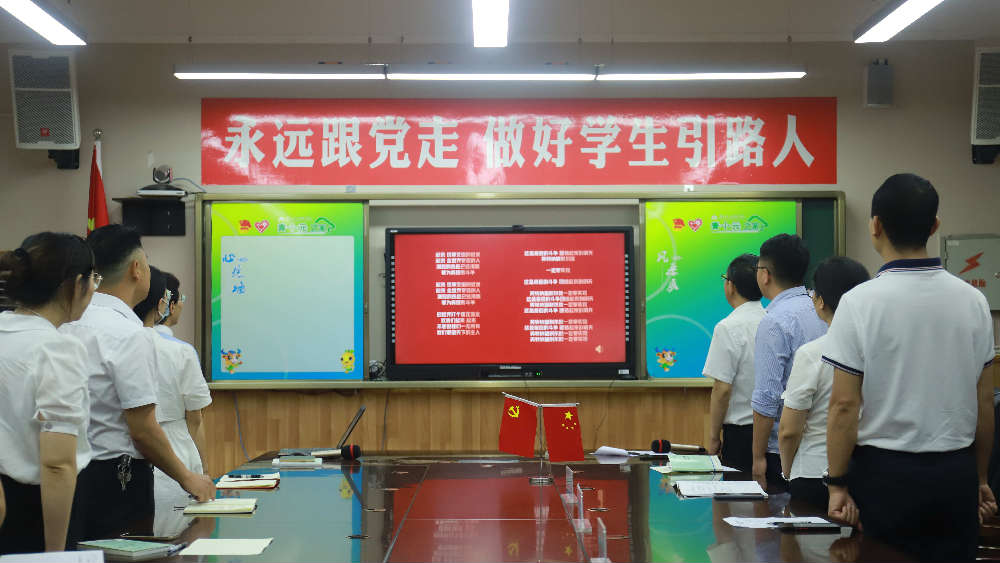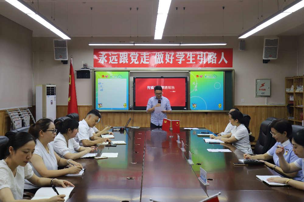 薛述容书记以“让党旗高高飘扬”为题,围绕学习贯彻习近平总书记来川视察指示精神和省第十二次党代会精神及市委教育工委书记、市教育局党组书记黄廷全同志在全市教育系统庆祝建党101周年大会上的讲话内容,给全体党员上了一堂精彩生动的党课。