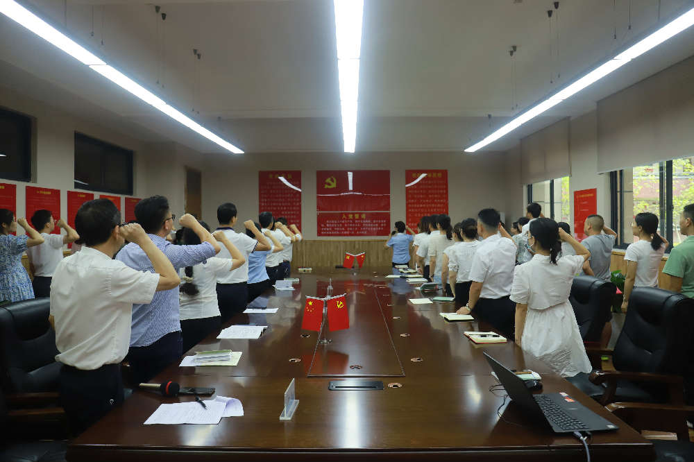 “我志愿加入中国共产党,拥护党的纲领,遵守党的章程,履行党员义务,执行党的决定,严守党的纪律,保守党的秘密,对党忠诚,积极工作,为共产主义奋斗终身……” 全体党员在薛述容书记的带领下,重温了入党誓词。