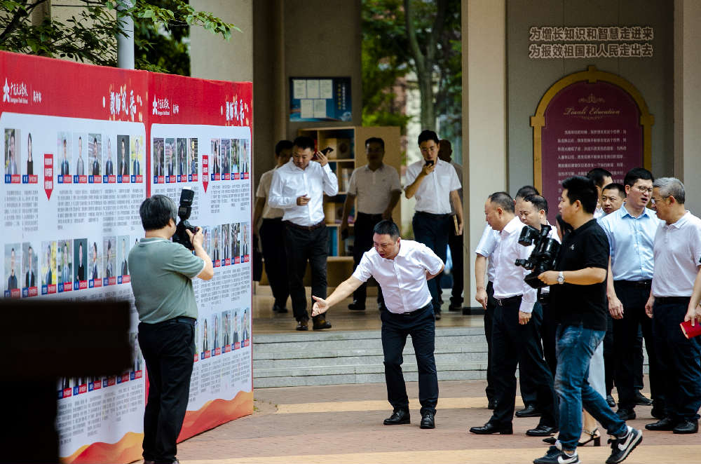 在学校迎宾广场的文化展示墙前,何树平书记听取了我校总校长黄永贵关于学校创生发展历程、办学理念、办学目标、办学追求、办学策略和办学业绩等情况的介绍。何书记对我校“让优秀者更优秀,让平凡者不平凡”的培养目标和近年来我校显著的高考成绩及拔尖人才培养成效及给予了充分肯定。