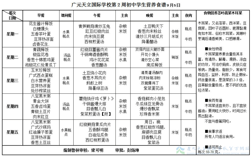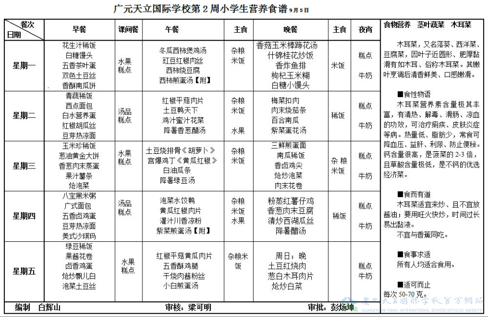 广元天立国际学校2016年秋季第2周营养食谱