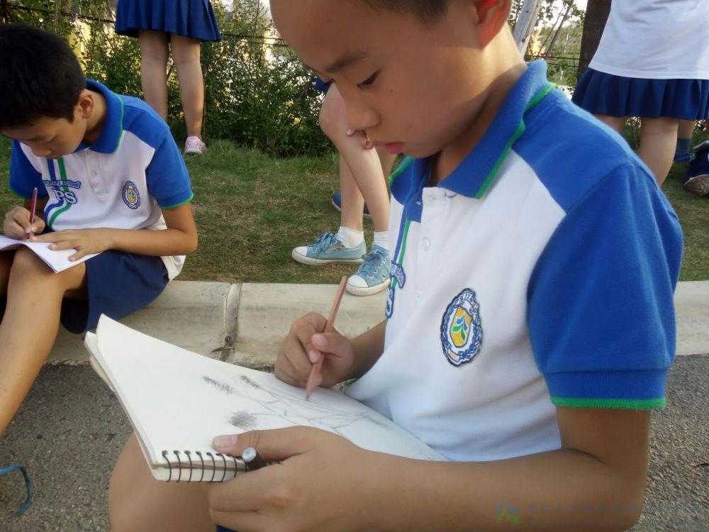 美术老师则带着孩子们开展了笔记大自然活动,来到天立湖畔画这美丽的芦苇。