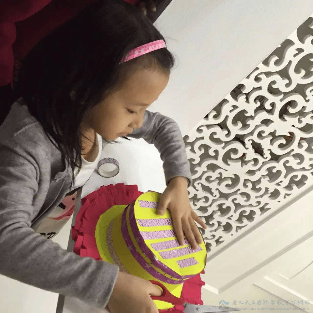 在家里,孩子们趁着中秋佳节和爸爸妈妈一起愉快地动手DIY起来,你瞧这些独一无二的帽子都是宝贝们一针一线纯手工制作哦!当我们把爸爸妈妈破旧的衣物和各种色卡纸、花边、绸带利用起来做出漂亮的帽子的时候,自我感觉良好,成就感爆棚!