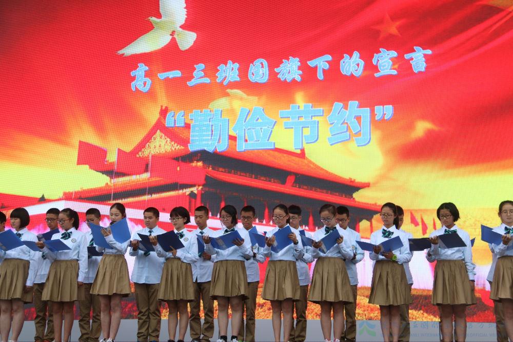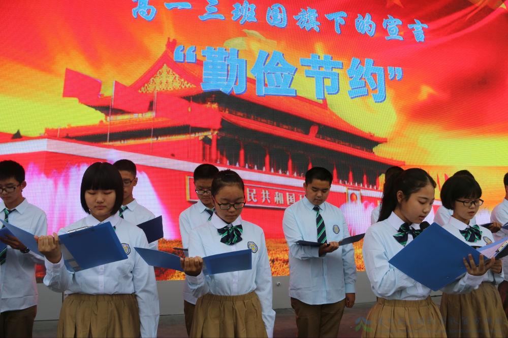 9月26日,开学第五周,高一3班的同学们经过精心组织和策划,带领全校师生进行了本学期第三次升旗仪式暨主题教育“建立节约型校园”。